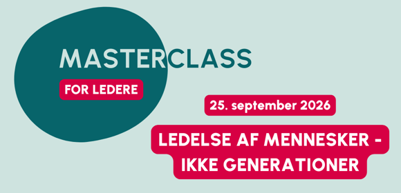 Masterclass om at lede mennesker - ikke generationer afholdes den 25. september 2026 kl. 8:30-9:30 på Teams. Beskrivelse følger.